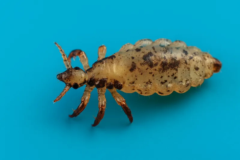 Sådan ser en nymfe ud, som er en lus, der lige er kommet ud af ægget. En nyudklækket nymfe er under 1 mm lang.