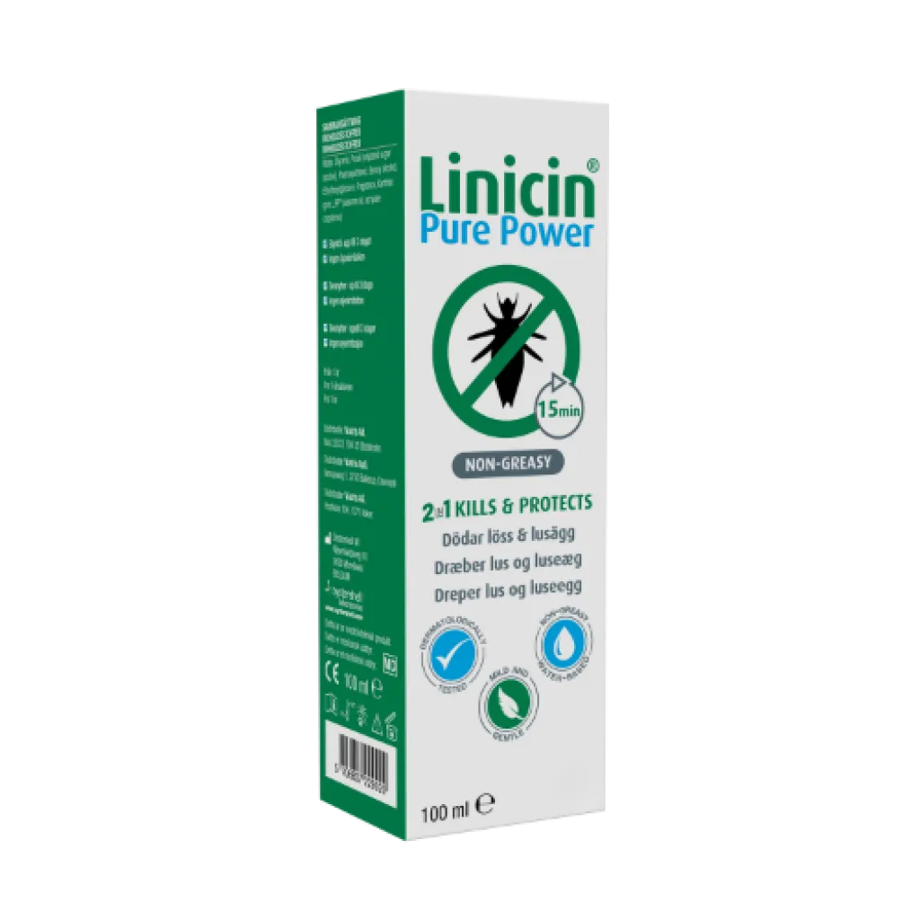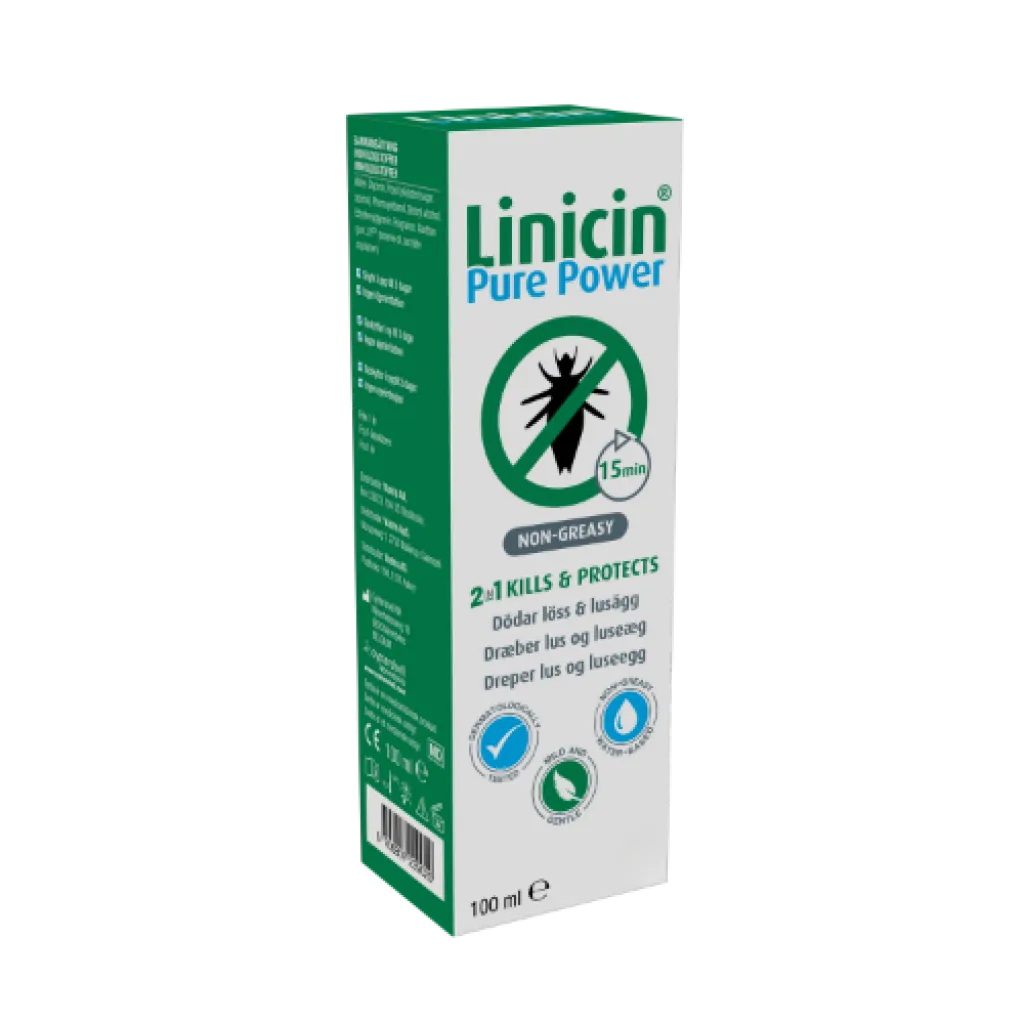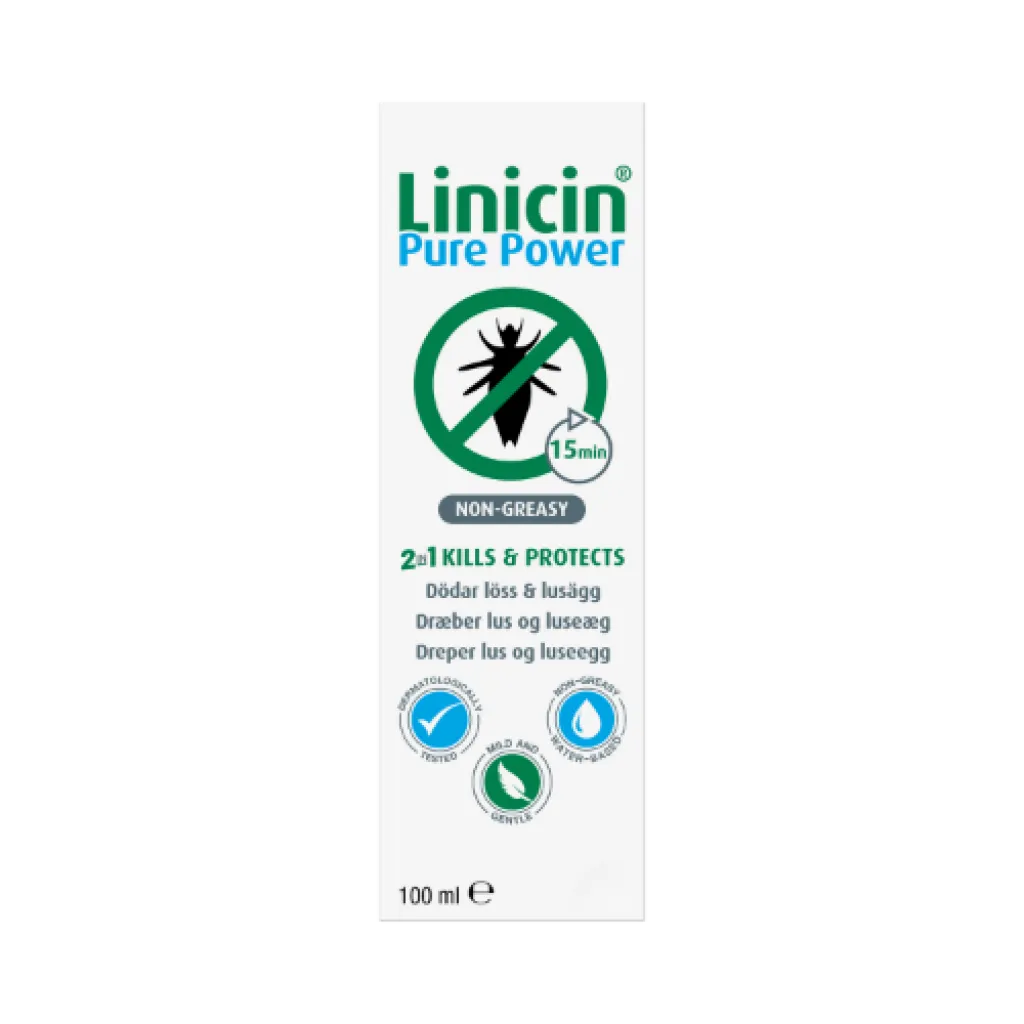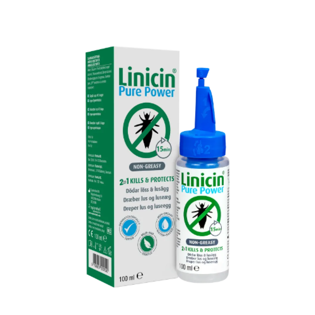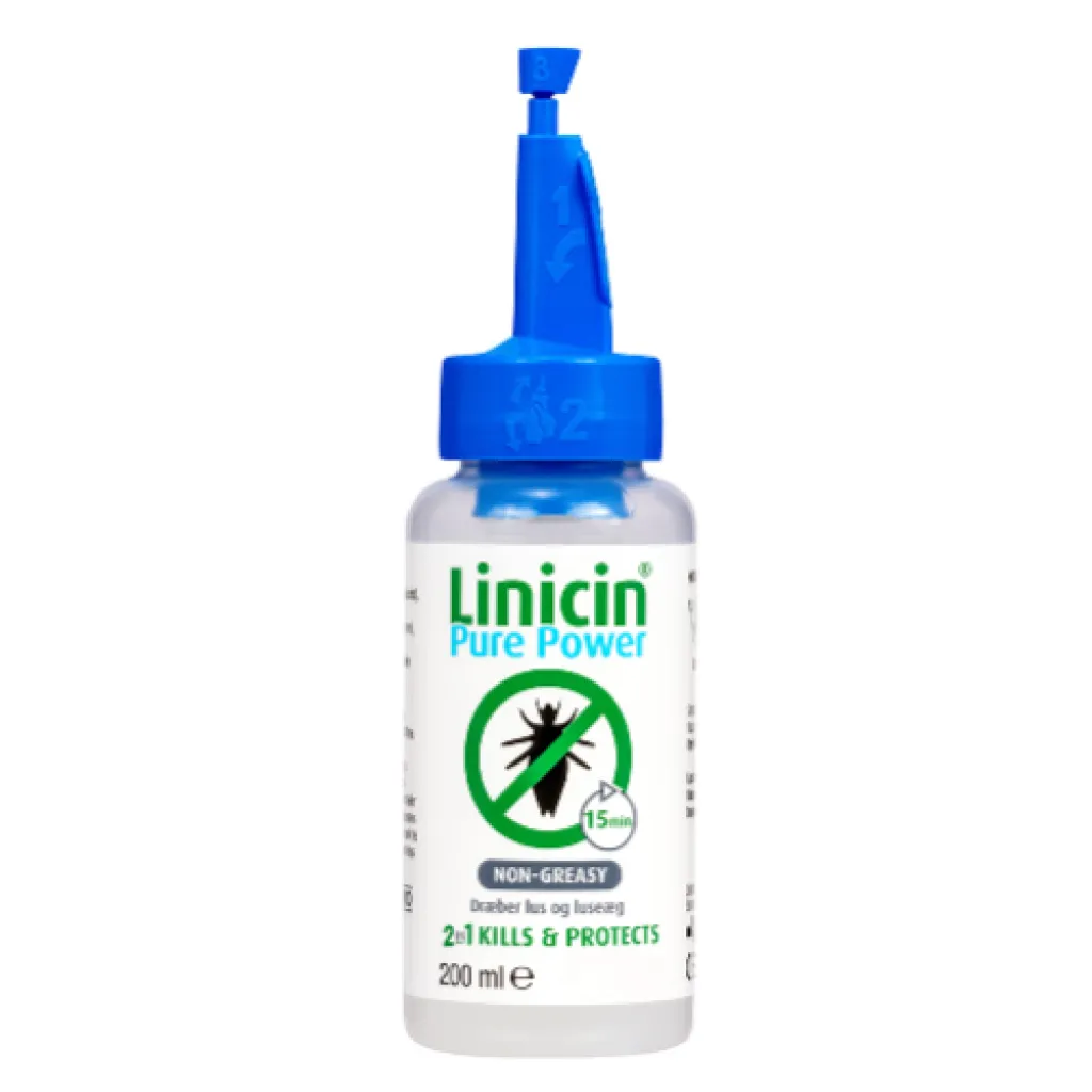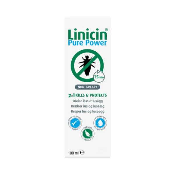 Linicin Pure Power (det eneste vandbaserede lusemiddel på markedet) dræber både lus og luseæg og forebygger nye luseangreb på kun 15 minutter. Linicin Pure Power er vandbaseret (fedter ikke håret), består af mere end 92% bionedbrydelige ingredienser og er derfor miljøvenlig.